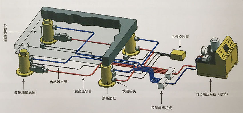 2.同步頂升能力200Ton至10000Ton,頂升高度: 10-500mm